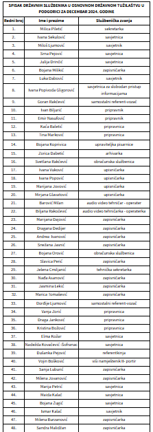 | SPISAK DRŽAVNIH SLUŽBENIKA U OSNOVNOM DRŽAVNOM TUŽILAŠTVU U PODGORICI ZA JUN 2025. GODINE |