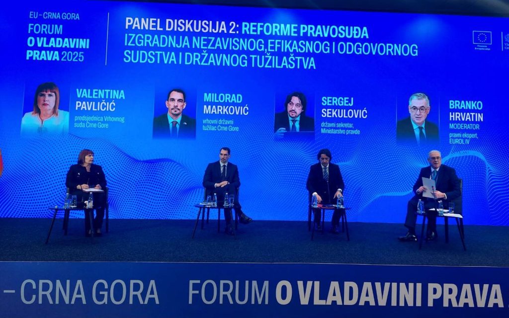 Na Forumu o vladavini prava 2025, održanom u Podgorici, vrhovni državni tužilac Milorad Marković predstavio je značajne rezultate i reformske procese Državnog tužilaštva, posebno ističući jačanje institucionalne otpornosti, profesionalne nezavisnosti i ukupne efikasnosti rada.